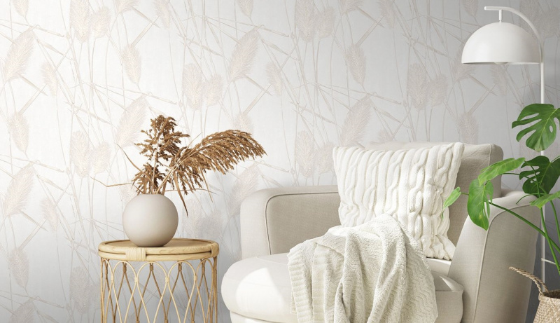Мельчайшие детали, абсолютная натуралистичность элементов,это невероятно популярные сейчас в интерьере, стебли пампасной травы.