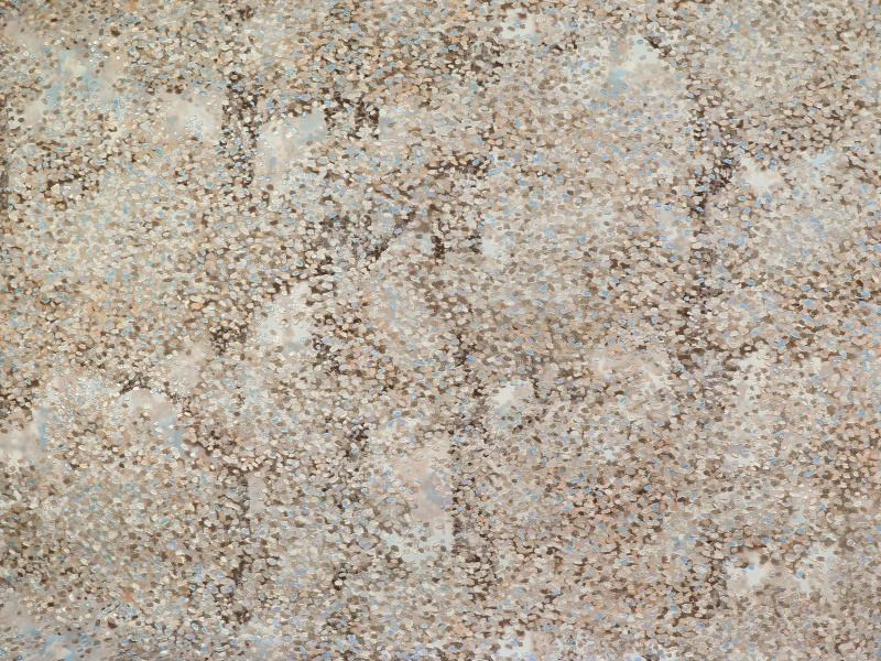 запечатленных сверкающими гранями мозаики. Кажущиеся разрозненными вблизи кусочки мозаики, в отдалении складываются в стройную, наполненную воздухом картину импрессиониста. Ореол листвы, колеблемой ветром, прописан крупными рельефными наплывами, напоминающими выпуклые мазки перламутра, акрила или жидкого металла.